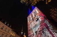 De Nikolaikirche Berlijn in het historische Nikolaiviertel in een bijzonder licht, ter gelegenheid van een lichtfestival in Berlijn