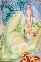 Nils Dardel (1888-1943) was een Zweedse schilder die vooral bekend is om zijn kleurrijke, surrealistische en vaak groteske werken. Hij maakte deel uit van de Parijse kunstscène van de jaren 1910 en 1920 en werd sterk beïnvloed door het modernisme, symbolisme en naïeve kunst. Zijn schilderijen worden gekenmerkt door levendige kleuren, grillige motieven en een mengeling van realiteit en fantasie. Een van zijn beroemdste werken is *The Dying Dandy* (1918), dat het conflict tussen schoonheid en sterfelijkheid thematiseert. Dardels kunst is speels, dramatisch en heeft vaak een melancholische ondertoon.