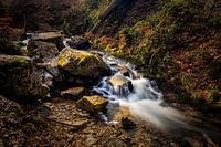 Watervalletjes in het bergriviertje de Ninglinspo in de Belgische Ardennen.
