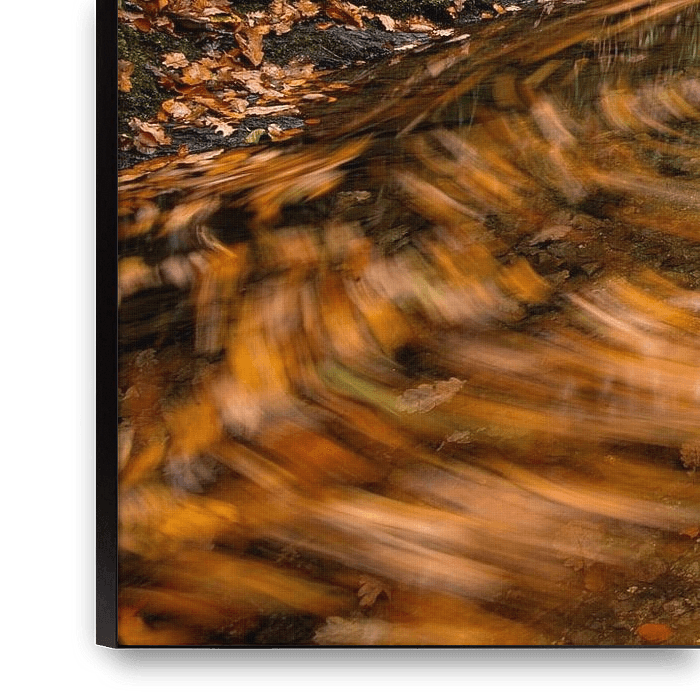 Het Ardennenriviertje de Ninlingspo in de herfst met prachtige kleuren van de gevallen bladeren.