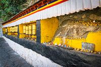 Op weg naar de top van de berg kom je in dit kloostercomplex gebedsmolens tegen.