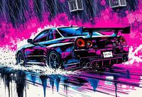 Nissan Skyline GT-R R34 - Storm in inkt Japanse kunst van MIROKKU