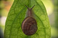 Totaal geen haast. Lekker chillen aan een blad. Door het gewicht zakte het blad door wat een leuk effect geeft naar de achtergrond