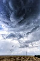 Windturbines bij de Zeelandbrug, een paar seconden voor een onweersbui.