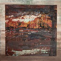 Gelaagde (kalk)verf met mixed media.