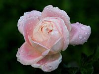 De regendruppels liggen als parels op de roos.
