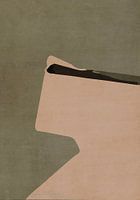 A masterpiece of Color Field Painting and Hard-edge Geometrics. The composition features steady olive green and warm flesh-pink blocks that meet at sharp, dynamic edges. A dark diagonal line cuts across the forms like a flash of intuition—there is "no reason" or predefined motive, only the rhythm of pure form. Through expansive flat…