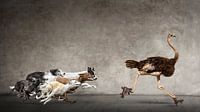 Deze windhonden achtervolgen de struisvogel op rolschaatsen! Dit gaat snel maar wie is hier de snelste! Laat je fantasie het werk doen!
