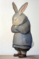 Vintage illustratie met portret van een lief klein obstinaat konijntje.