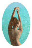 Portret van een jonge vrouw. Het werk is een combinatie van fotografie en schilderkunst. Alle stippen zijn met de hand geschilderd en geven het geheel een prachtige sfeer.