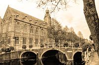 De Nonnenbrug is een vaste stenen brug uit 1978 in de binnenstad van de Nederlandse stad Leiden. De brug verbindt ter hoogte van het Academiegebouw de Nonnensteeg en de Kloksteeg en overbrugt het Rapenburg.De eerste brug op deze plek werd gebouwd in 1426 (volgens een stadsrekening van dat jaar werd er een nieuwe brug geslagen 'tussen heer Jacobs van Rysoorde ende den Baghinen'). De naam is pas ontstaan, toen later (circa 1447) de Witte Nonnen zich aan het Rapenburg vestigden in het dominicanessenklooster, dat na het Leidens ontzet in 1574 werd geconfisqueerd en sinds 1581 wordt gebruikt door de Universiteit Leiden. De brug werd vernieuwd in 1609/1610 en herbouwd in 1669 en 1978. In 1911 werd het oostelijke gewelf vernieuwd. Op 2 mei 1968 werd de Nonnenbrug als rijksmonument ingeschreven in het Monumentenregister.De Nonnenbrug vormt van oudsher ook een deel van de route van de cortèges van de universiteit van of naar bijvoorbeeld het stadhuis of de Pieterskerk.Het Academiegebouw dateert uit 1516 en is het oudste gebouw van de Universiteit Leiden. In dat jaar werd het gewijd als kapel voor het aan het Rapenburg gevestigde dominicanessenklooster. De gevel bestaat uit acht traveeën, voorzien van hoge spitsboogvensters. Het interieur van de kerk ging in 1566 verloren bij de eerste Beeldenstorm, het gebouw zelf werd na het Leidens ontzet in 1574 geconfisqueerd. Sinds 1581 wordt het gebouw gebruikt door de zes jaar daarvoor gestichte universiteit. In 1616 werd het gebouw verbouwd om