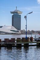 De klok aan de kade van het IJ vertelt ons dat het 12.00 uur is in hartje Amsterdam. Dit werk is ook in zwart-wit te bestellen.