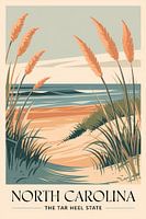 Met zachte pastelkleuren en gestileerde grassen die de kust omhelzen, geeft dit kunstwerk perfect de rustige schoonheid van North Carolina weer. De harmonieuze combinatie van strand en zee straalt een gevoel van ontspanning en vrijheid uit, ideaal voor de woonkamer of een inspirerende studeerkamer om een rustgevende sfeer te creëren.