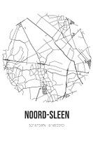 Zwart-witte landkaart, stratenplan of plattegrond van Noord-Sleen. Noord-Sleen is gelegen in de gemeente Coevorden, provincie Drenthe. Op de stadskaart zijn alle openbare wegen in Noord-Sleen opgenomen. Verder is de kaart voorzien van de coördinaten van het centrum van Noord-Sleen.