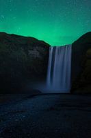 Skogafoss is een waterval in Ijsland, met wat geluk kun je het noorderlicht soms boven de waterval zien.
