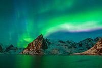 Dit werk toont het noorderlicht, ook wel aurora borealis genoemd, boven een fjord en de bergen op de Lofoten in het noorden van Noorwegen. De foto werd gemaakt in de winter en de bergen zijn bedekt met sneeuw. Het noorderlicht is zichtbaar als een fraaie groene baan in de lucht. Het geeft de foto een sterke groene kleur. Ook het water van het fjord heeft een groene kleur door de reflectie van het noorderlicht.