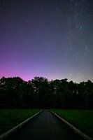 Noorderlicht, aurora borealis en Melkweg aan de nachtelijke hemel boven het bos in het Nationaal Park Dwingelerveld in Drenthe, Nederland tijdens de zomernacht van 12 augustus 2022. Het is zeldzaam dat het noorderlicht in Nederland te zien is.