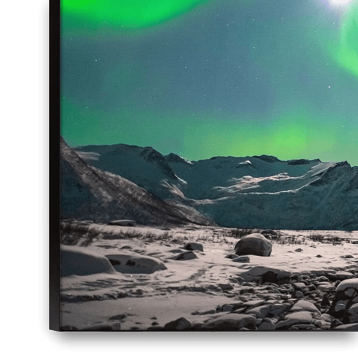 Jouw gekozen kunst op doek, gespannen in een aluminium frame. Snel en eenvoudig te verwisselen voor een frisse uitstraling en helemaal zoals jij het wilt.