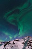 Noorderlicht, poollicht of Aurora Borealis in de nachtelijke hemel boven Senja eiland in Noord-Noorwegen. Besneeuwde bergen op de voorgrond en de nachtelijke hemel met het poollicht op de achtergrond.