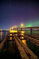 Noorderlicht over Giske brug, Valderøya, Ålesund, Noorwegen