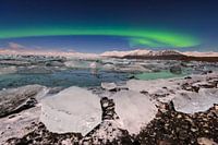 Dat ik deze foto kon maken, was puur geluk. Ik was naar het gletsjermeer Jokulsárlón gegaan omdat het ijs bij volle maan schitterend is om te fotograferen. Maar toen ik aankwam, scheen het noorderlicht, tegen alle verwachtingen in. Ik was op het goede moment op de goede plaats!