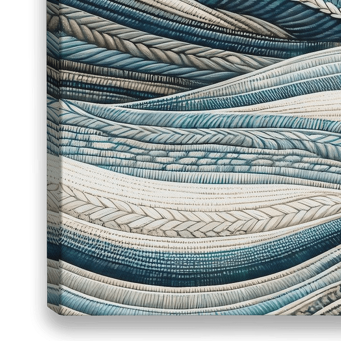 Koop dit abstracte kunstwerk Noordse Zee, moderne Scandinavische textielkunst Abstractie van Mad Dog Art op canvas, aluminium dibond, (ingelijste) fotoprint, behang en ArtFrame, op maat geprint in Fine-Art kwaliteit.