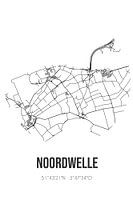Zwart-witte landkaart, stratenplan of plattegrond van Noordwelle. Noordwelle is gelegen in de gemeente Schouwen-Duiveland, provincie Zeeland. Op de stadskaart zijn alle openbare wegen in Noordwelle opgenomen. Verder is de kaart voorzien van de coördinaten van het centrum van Noordwelle.