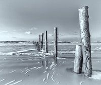 De Noordzeekust op het Deense eiland Rømø. Zwart-wit fotografie.
