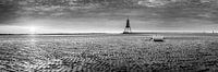 Zonsopgang in de Noordzee Waddenzee bij Cuxhafen in zwart-wit .