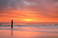 Noordzeekust Texel met op de voorgrond een strandpaal