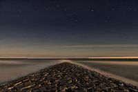 Alleen op het zomers redelijk drukke Noordzeestrand van Vlieland heb ik deze pier als voorgrond gekozen voor een lange sluitertijdfoto. Er waren bijna geen wolken dus het lag voor de hand iets met de sterrenhemel te doen. De strepen licht aan de einder zijn de grote zeeschepen op de vaarroute boven de eilanden.
