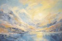 Dit werk uit de serie Faded Dreams toont een dromerig Noors besneeuwd berglandschap. Het kleurenpallet is opgebouwd uit verschillende tinten royaal geel, oranje en blauw. Het werk geeft een moderne uitstraling aan uw interieur!