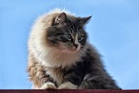 lieve Noorse Boskat tegen een blauwe achtergrond