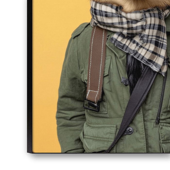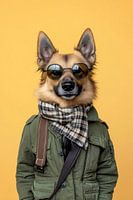 Met een charmante blik achter een stijlvolle zonnebril en een coole outfit straalt deze Noorse Buhund een onconventionele elegantie uit. Zijn borstelige, gouden vacht en alerte, rechtopstaande oren geven hem een vleugje nieuwsgierigheid en dorst naar avontuur. Een echte trendsetter onder de viervoeters, klaar voor de volgende stedelijke ontdekkingstocht!