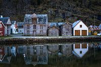 Idyllische huisjes in een klein Noors dorpje