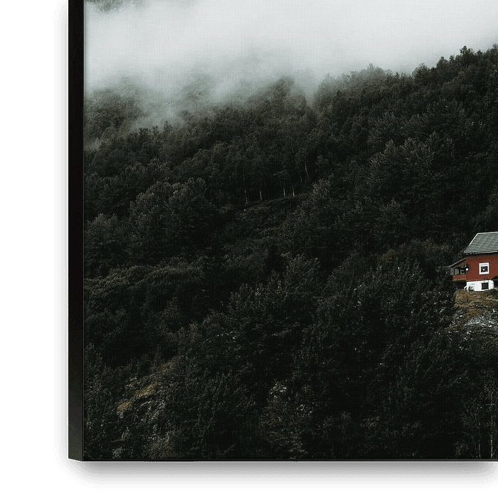 Een rood houten huisje verscholen tussen de groene bergen van Noorwegen, omringd door dichte bossen en mysterieuze mist die langzaam over de berghelling trekt. Deze minimalistische en sfeervolle foto ademt de rust, puurheid en eenvoud die zo kenmerkend zijn voor Scandinavië. Een krachtig beeld dat perfect past in een interieur met een…