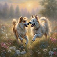 Koop dit digital art kunstwerk Norrbottenspets spelen in een bloemenveld van Johannas Art Creations als reproductie geprint op canvas, aluminium dibond, (ingelijste) fotoprint, behang en ArtFrame. Voor jou op maat geprint in Fine-Art kwaliteit.