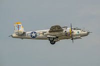 Flyby van de North American Aviation B-25J Mitchell met de bijnaam Super Rabbit tijdens de Thunder over Michigan Airshow in 2015.