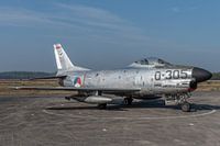 North American F-86K "Kaasjager" tentoongesteld op het platform van het Nationaal Militair Museum (NMM) in Soesterberg in augustus 2020.