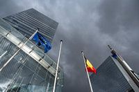 Brussel heeft een groot zakendistrict, vooral aan het Noordstation. Met een laag standpunt en stevige donderwolken heb ik het drama gehalte van deze saaie kantoortorens kunnen verhogen. Brussel, België 21 AUG 2025