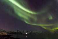Een sterke band met noorderlicht gezien vanuit Skulsfjord