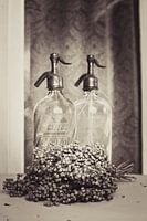 Sfeerbeeld van nostalgische spuitwaterflesse. Uitgevoerd in duotonen. Brocante. Nostalgie. Vervlogen tijden komen weer tot leven.