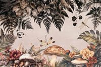 Een charmant en rustiek ontwerp met botanische paddenstoelen en varens in vintage stijl in monochrome herfstkleuren. Geïnspireerd door nostalgische natuurstudies, brengt het bosromantiek en seizoenswarmte in je kamers en verspreidt het een gezellige herfstflair.