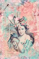 Collage met portret van vrouw in een mix van modern en oud in delicate pasteltinten