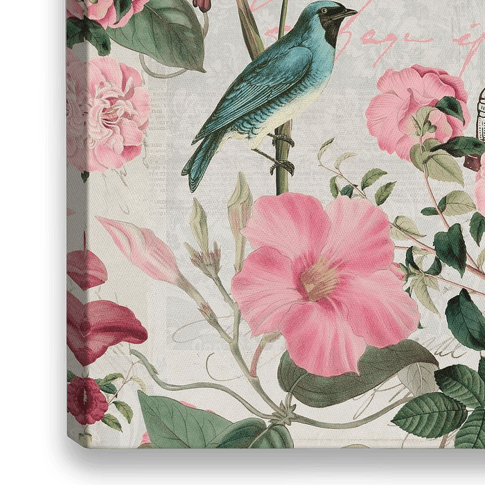 Romantische vintage-illustratie met vogelkooi, vogels en bloemen in zachte pastelkleuren