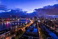 Heerlijk uitzicht over de skyline van Rotterdam gezien vanaf het dak van flat De Hoge Wiek.
