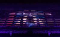 Lichtshow Noviter in het Philips Stadion tijdens Glow 2019. Deze kleurrijke show met lichtstralen en lasers kan een blijvende herinnering aan de muur worden.