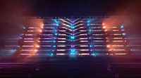 Lichtshow Noviter in het Philips Stadion tijdens Glow 2019. Deze kleurrijke show met lichtstralen en lasers kan een blijvende herinnering aan de muur worden.