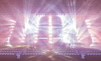 Lichtshow Noviter in het Philips Stadion tijdens Glow 2019. Deze kleurrijke show met lichtstralen en lasers kan een blijvende herinnering aan de muur worden.