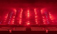 Lichtshow Noviter in het Philips Stadion tijdens Glow 2019. Deze kleurrijke show met lichtstralen en lasers kan een blijvende herinnering aan de muur worden.